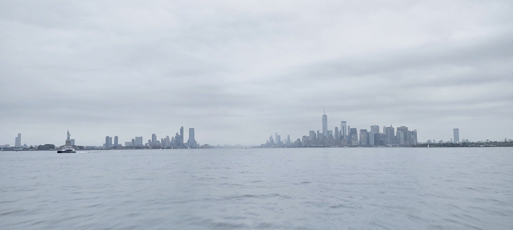 The Ferry My friends chose to hang out there so I headed to the Staten Island Ferry that would take me to Downtown. Walk the bend led to the ferry, upon arrival the line was not huge, assumed everybody was still hanging out and having fun. The lady ahead of me was puzzled “Do we have to pay for this ferry?“, she was expecting it to be part of the whole tour package to land us back to the place we started from. I mumbled “Welcome to American capitalism madam!“, Immediately the lady attending the ferry pointed further saying that “You can board that ferry, that is free ride arranged by Bike Tour“. That led us to another ferry where more than 200 cyclists waited for the next ride. Thought this is going to be a long wait, to my amazement the next ferry hosted all the 200 and more, I had got the front seat(standing) overlooking the view to World Trade Center, Statue of Liberty and Brooklyn Bridge in a single frame. It was a cloudy day, hence the gray pastel, great for biking but not for landscape pictures. You can’t have the cake and eat it too. Hoped off the ferry, it is amazing to watch how quickly they dock it, no wonder it is a everyday busy commuter ferry for SI residents, I had heard about this ferry as NJ residents could drive up to SI and park there cars to ride this ferry to reach Downtown for everyday work. NJ Transit trains who bag awards year after year are the worst transit system to NYC.