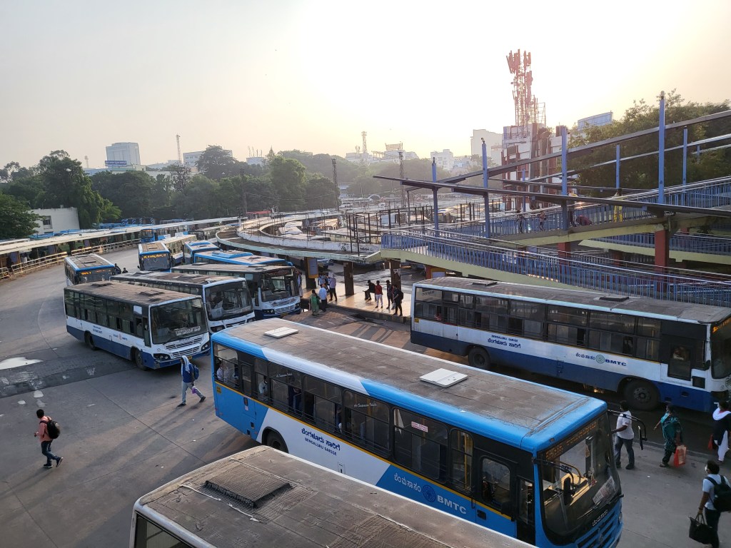 I had started my journey at 6AM from RamaMurthy Nagar, my brother’s house who had dropped me to Bayappanhalli Metro, the plan per my brother was, I get off at Majestic and get the Airavat to Mysore. As soon as I got off at Majestic, I was awaited for a rude awakening, no buses departed from Majestic to Mysore, all of that service had moved to Satellite. My bother had no idea about this and I don’t blame him, he always travelled by his personal car and never used the public transport. Majestic is an area where all modes of transportation are housed next to each other, The Southwestern Railway Station, The circular maze inter and intra-city bus stand; Kempegowda Bus Station and now the newly constructed Namma Metro. I just had to walk around a little and finally had managed to get into city red bus to Satellite.